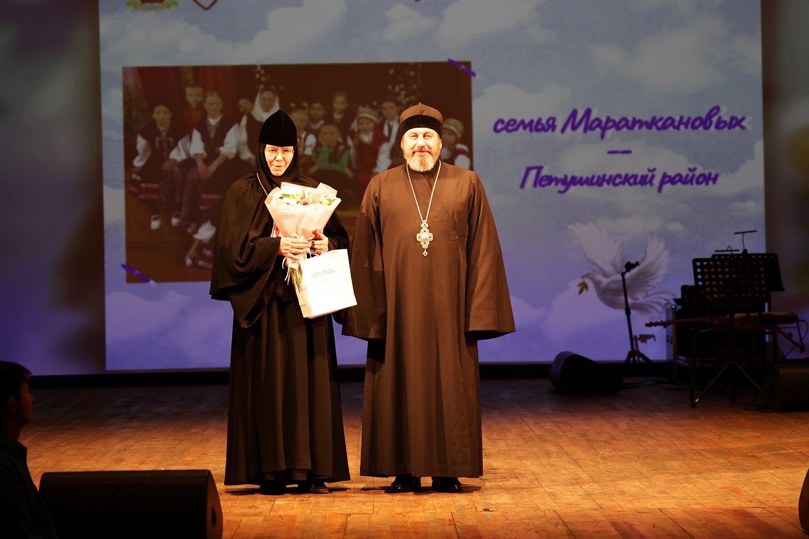 Почетные гости праздника - Первый заместитель Министра образования Владимирской    области Светлана Арлашина, председатель комитета по имущественным и земельным отношениям Законодательного Собрания Владимирской области Александр Цыганский, Епископ Александровский и Юрьев – Польский Стефан, председатель Владимирского областного отделения Российского детского фонда Елена Афанасьева.